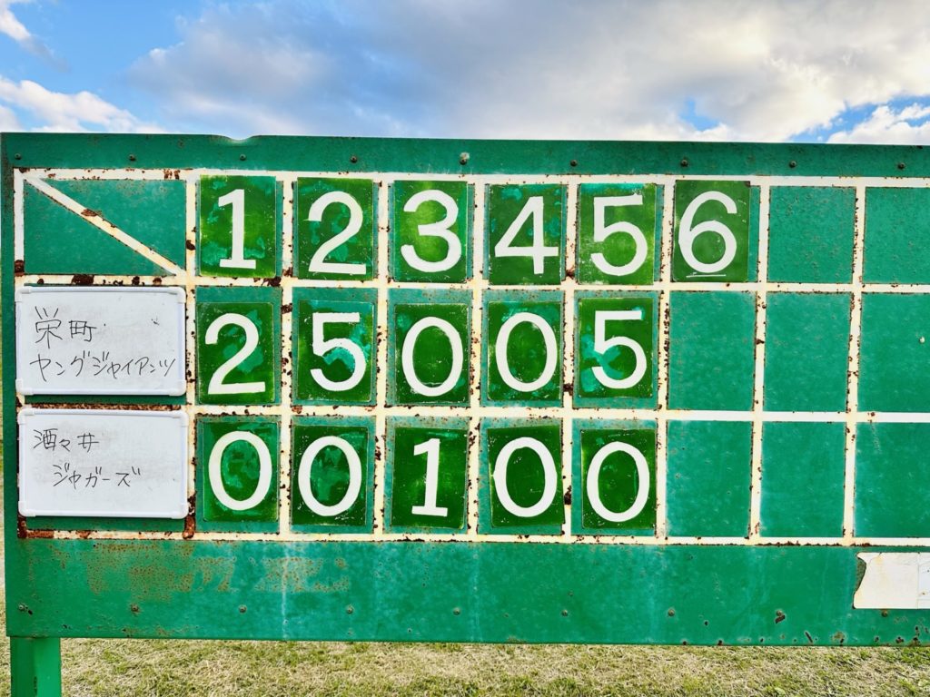 この日、ホームの酒々井小学校は風も吹いており、寒かったのですが、試合会場となった栄町ヤングジャイアンツ球場は穏やかでした。